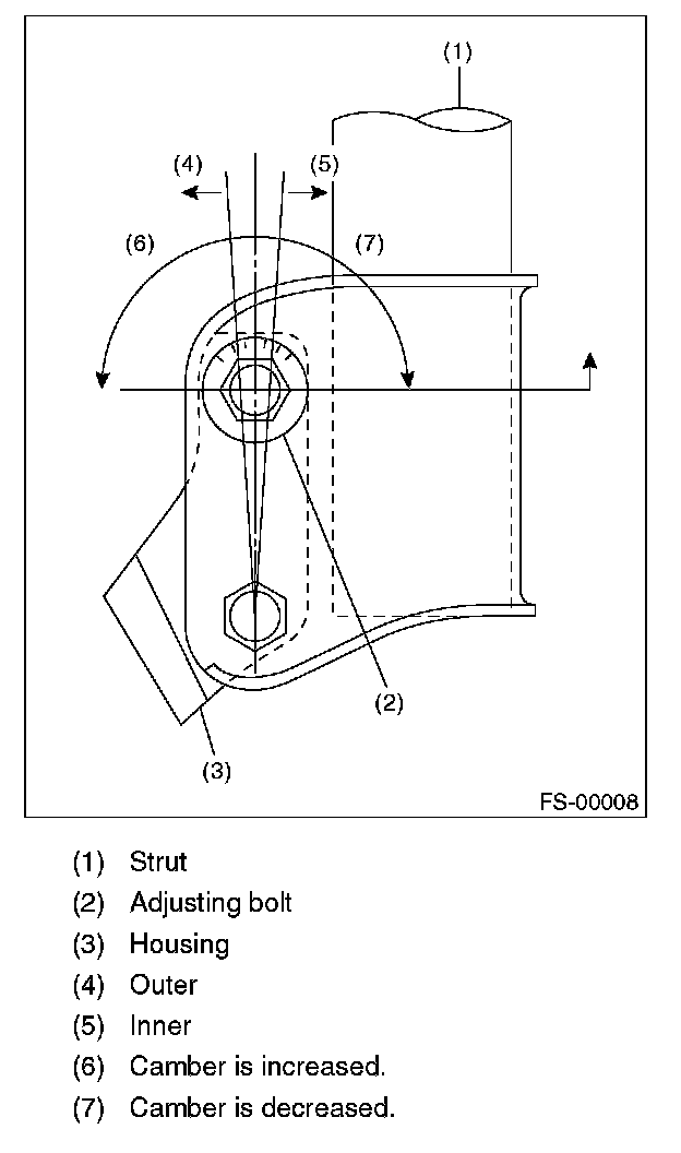 3) Turn the camber adjusting bolt so that the camber is set at specification.