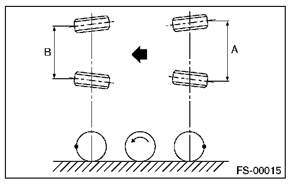 2) Place a mark at the center of both left and right tires, and measure distance "A" between the marks.