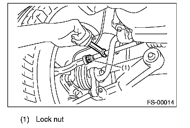 3) Turn the left and right tie-rods by equal amounts until the toe-in is at the specification.