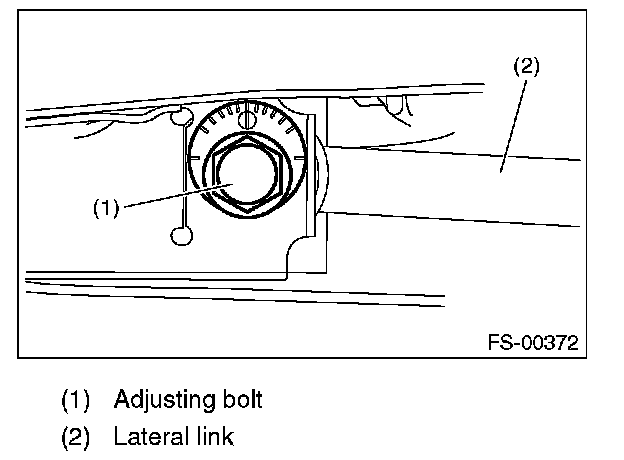1) Make thrust angle adjustments by turning the toe-in adjusting bolts of the rear suspension equally in the same direction.