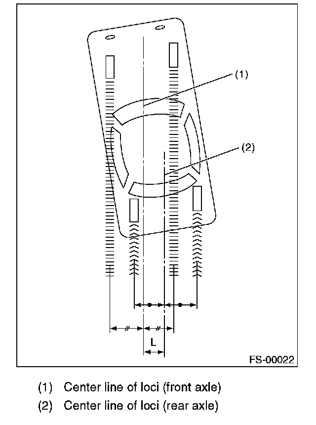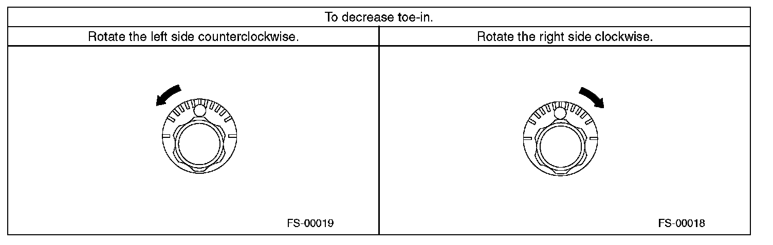 2) When one rear wheel is adjusted in a toe-in direction, adjust the other rear wheel equally in toe-out direction, in order to make the thrust angle adjustment.