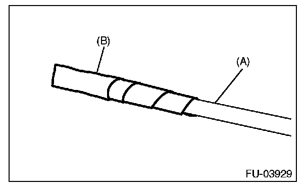 - To prevent damaging the tabs of the pump assembly, wrap the tip of flat tip screwdriver (A), etc. with tape (B).