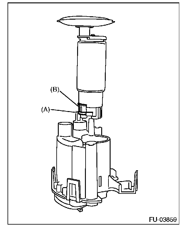 1. Assemble O-ring (A) and spacer (B) to the pump assembly and attach the pump assembly to the fuel filter.