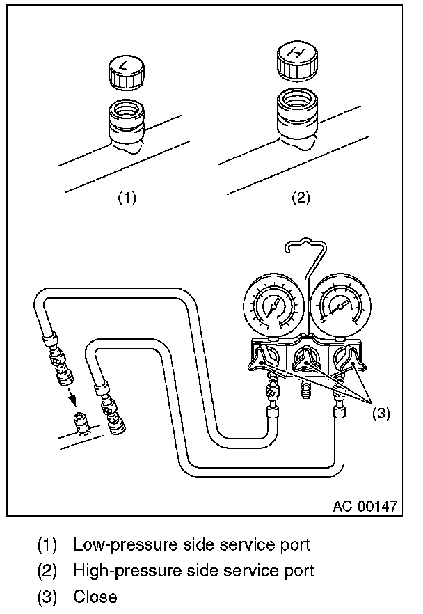 3. Make sure the valves on low/high pressure sides of manifold gauge set are fully closed.