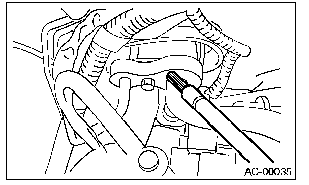 - Check the compressor shaft seal at the area near the center of compressor clutch pulley.