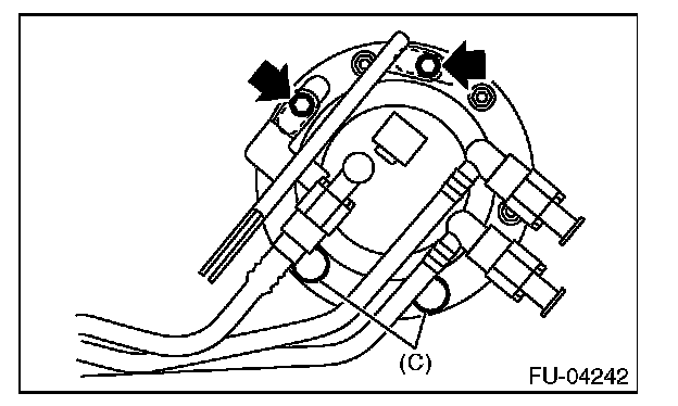 - After tightening, install the rubber cap (C) at the position shown in the figure.