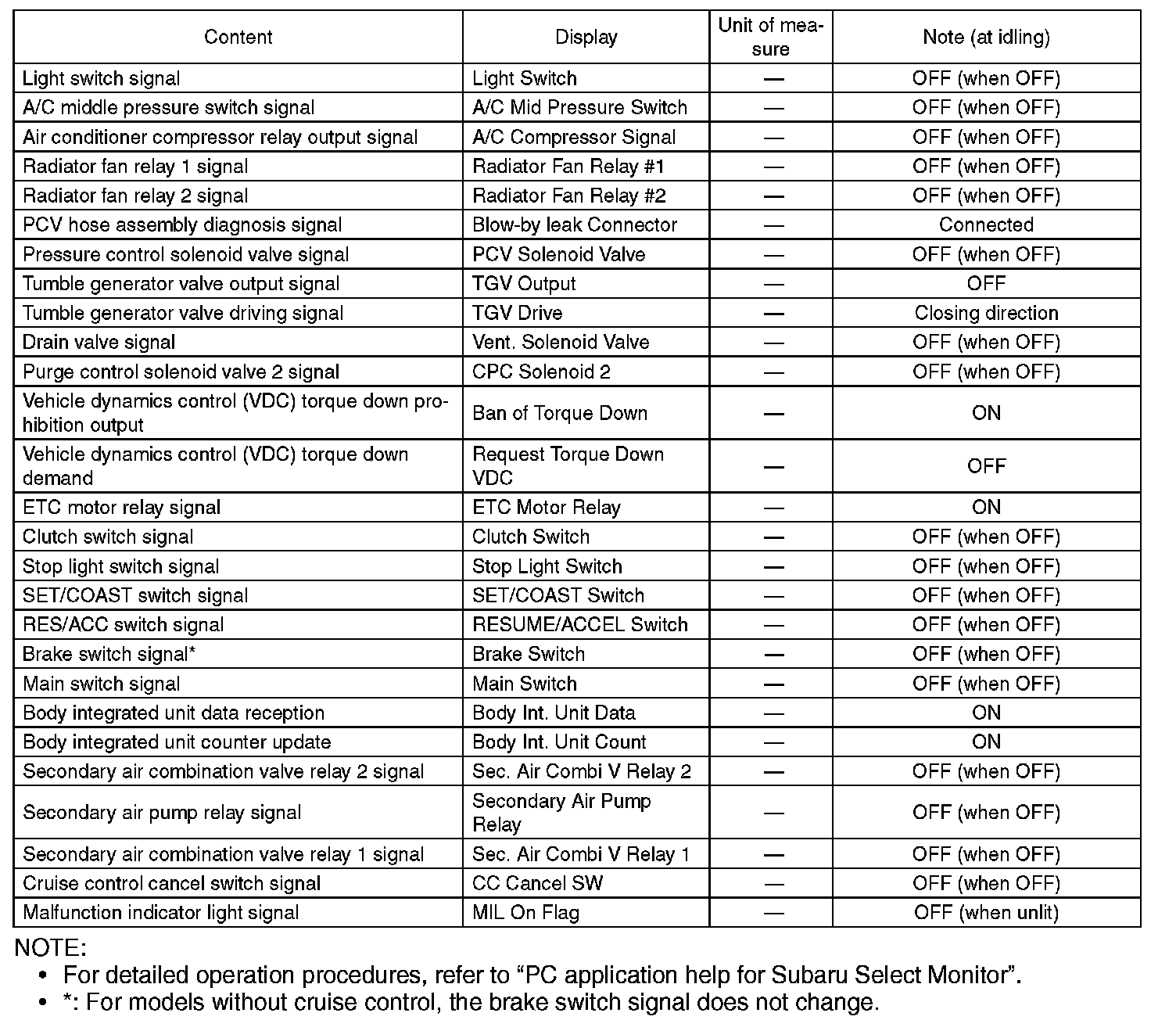 NOTE: For detailed operation procedures, refer to "PC application help for Subaru Select Monitor".