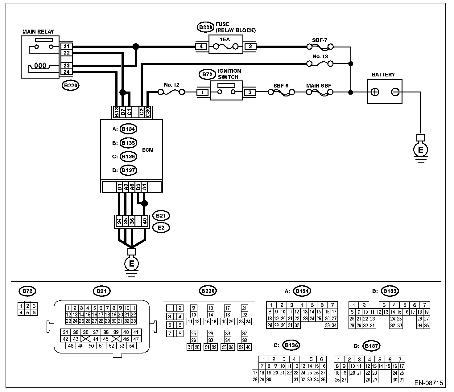 CHECK POWER SUPPLY AND GROUND LINE OF ENGINE CONTROL MODULE (ECM)CAUTION: After servicing or replacing faulty parts, perform Clear Memory Mode Clear Memory Mode, and Inspection Mode Preparation For the Inspection Mode.