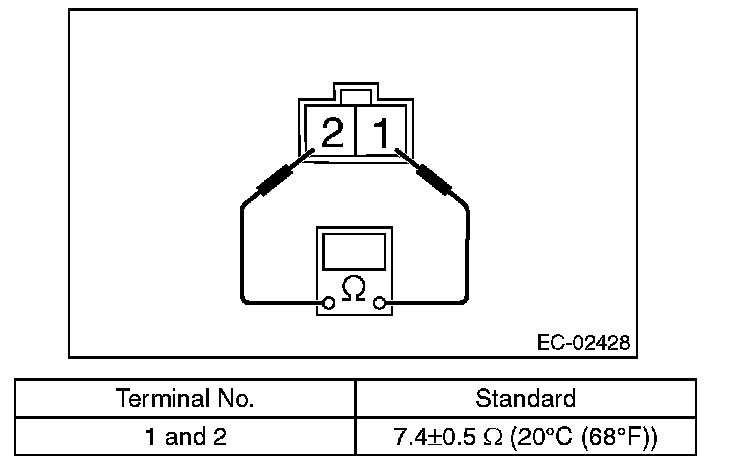 2. Measure the resistance between the oil flow control solenoid valve terminals.