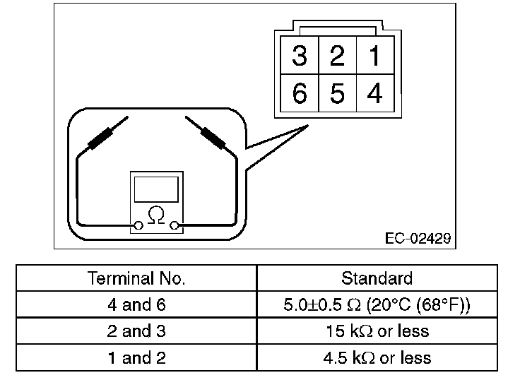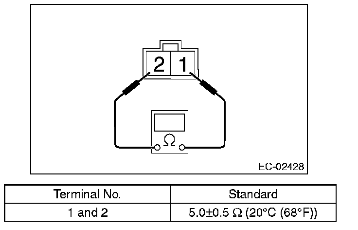 2. Check the resistance between the terminals of secondary air combination valve LH.