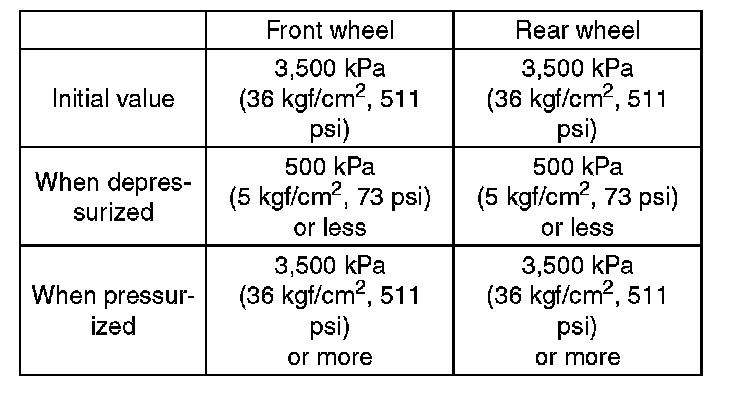 7) Read values indicated on the pressure gauge and check if the fluctuation of the values between decompression and compression meets specification. Depress the brake pedal and check that it is not abnormally hard, and tightness is normal.