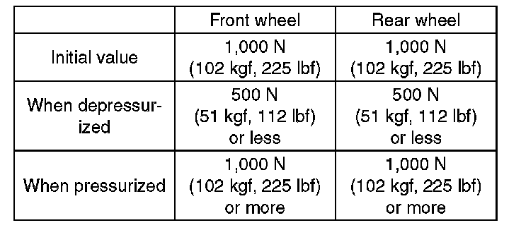 7) Read values indicated on the brake tester and check if the fluctuation of the values between decompression and compression meets specification.