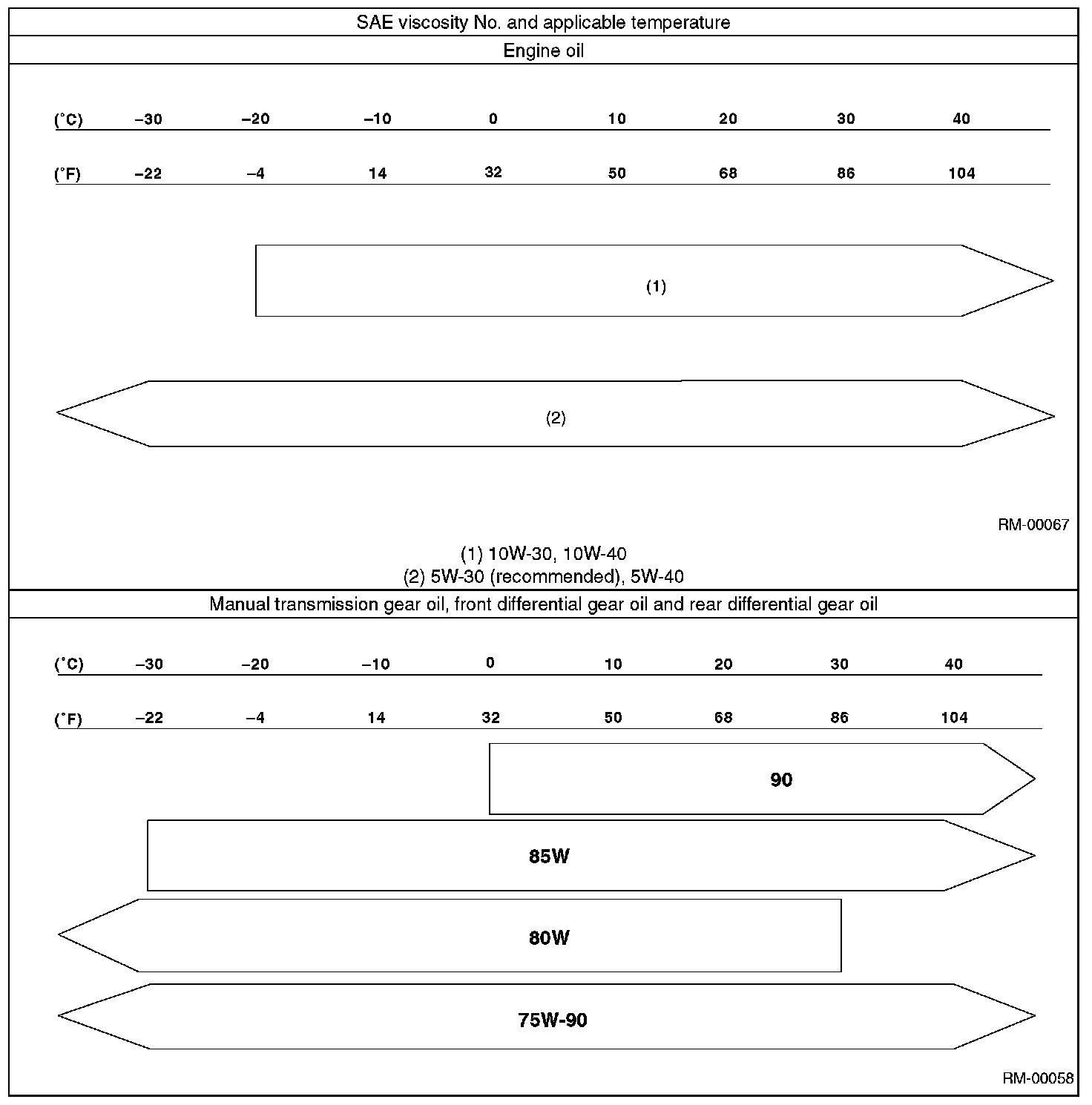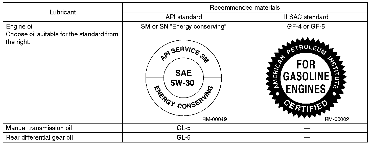 Use the lubricants shown in the table below, or equivalent. See the table below to choose the correct SAE viscosity.
