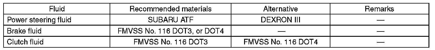 Use the fluids specified in the table below. Do not mix two different kinds or makes of fluid.