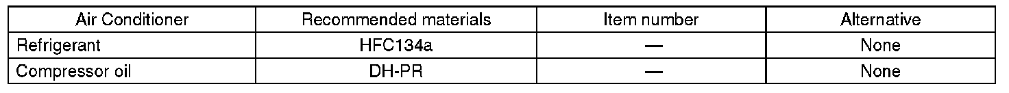 Standard air conditioners on Subaru vehicles use HFC134a refrigerant. Do not mix it with other refrigerants. Also, do not use any compressor oil except for DH-PR.