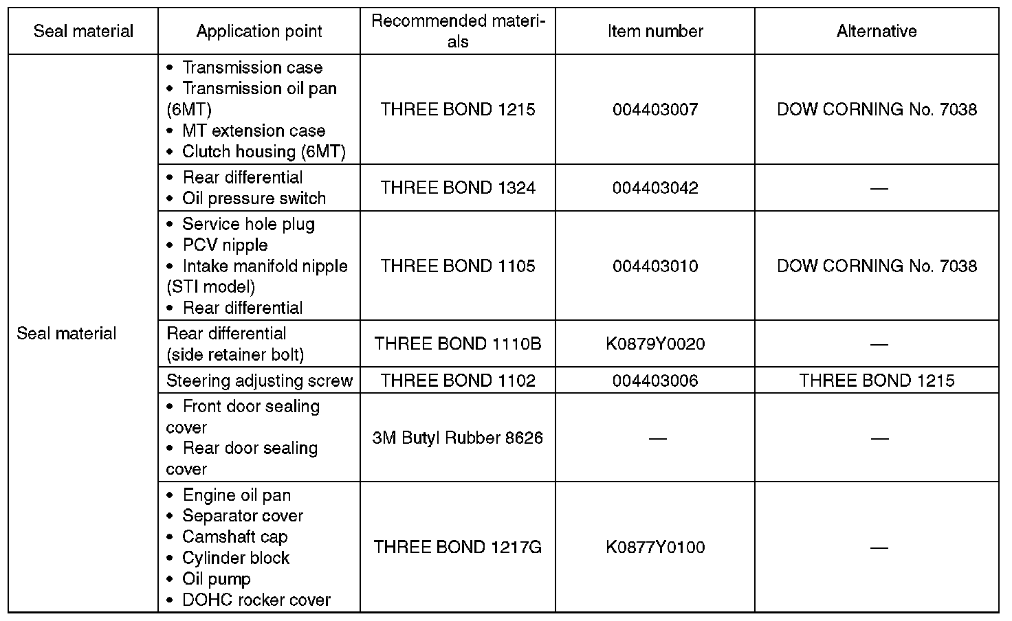 To insure the best performance, always use the specified oil, gasoline, adhesive, sealant, etc. or a substitute of equivalent quality.