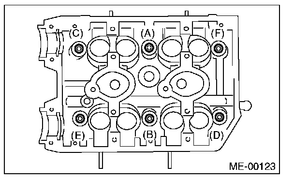 To avoid erroneous tightening of the bolts, clean out the bolt holes sufficiently by blowing with compressed air to eliminate engine coolant etc.