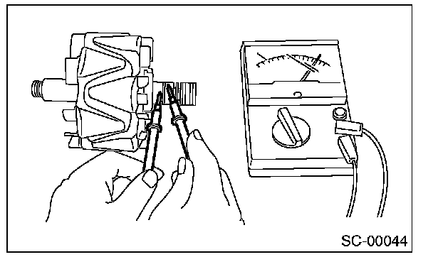 3. Using a circuit tester, check the resistance between slip rings. If resistance exceeds the standard, replace the rotor.