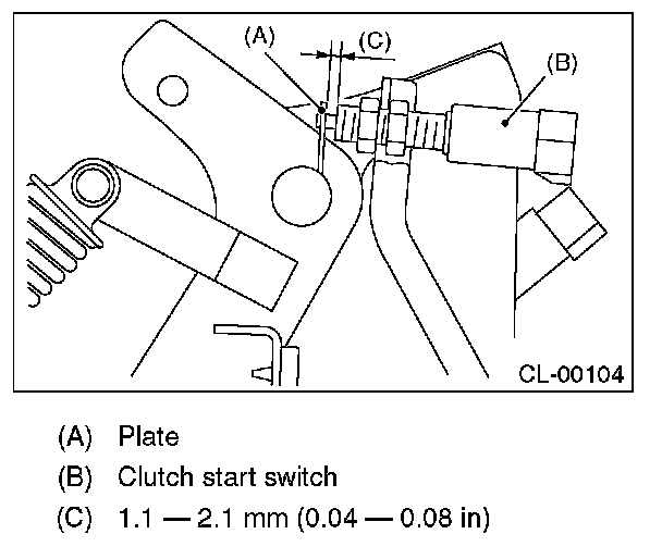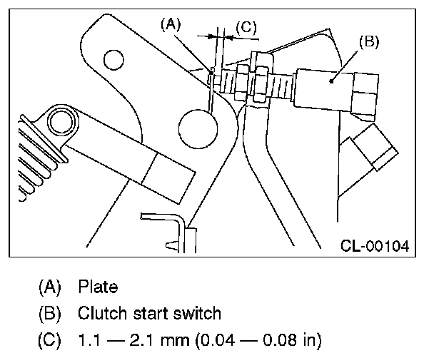 3) Adjust the gap of the clutch pedal plate and the clutch switch to be 1.1 - 2.1 mm (0.04 - 0.08 in).