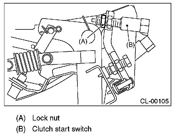 1) Loosen the lock nut of clutch start switch.