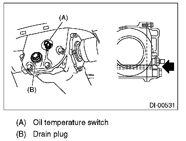 4) Remove the filler plug or the oil temperature switch, and then check the gear oil. Replace the gear oil if it is contaminated, deteriorated or cloudy.