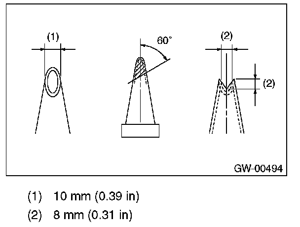 2. Fabricate the cartridge nozzle tip as shown and set the sealant gun with the adhesive.