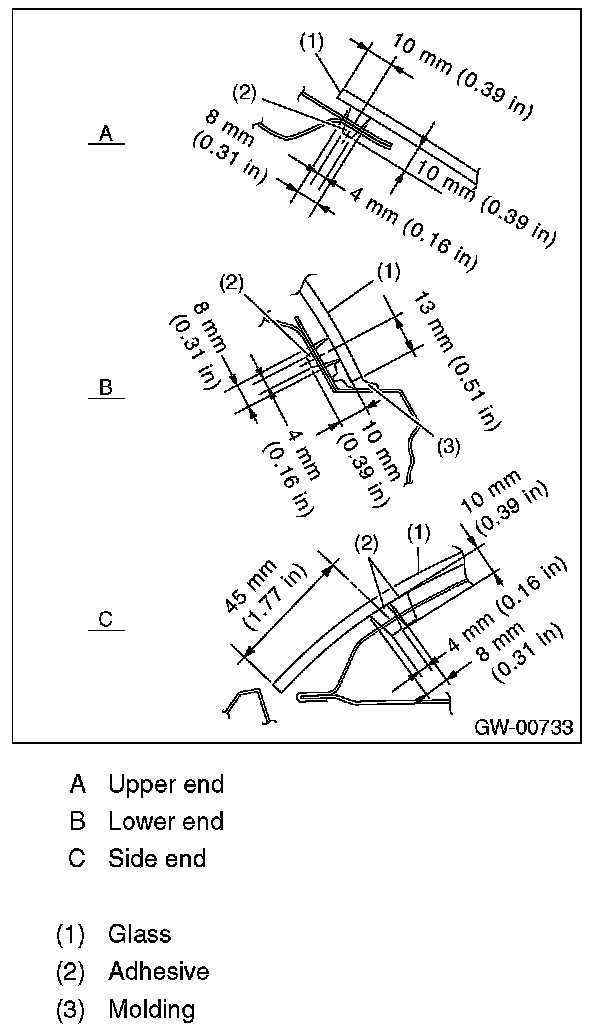 - For minimum drying time and vehicle standing time before driving after bonding, follow instructions or instruction manual from the adhesive manufacturer.