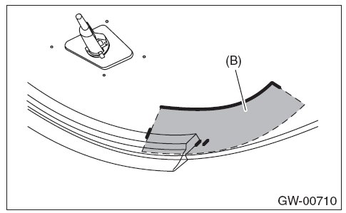 7. Degrease the rear gate glass seal adhesion surface (B) with primer.