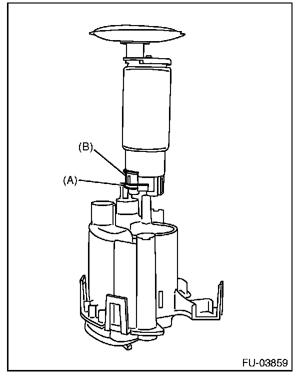 1. Assemble O-ring (A) and spacer (B) to the pump assembly and attach the pump assembly to the fuel filter.