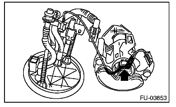 CAUTION: When separating the sub tank bracket assembly and the fuel filter assembly, be careful not to damage the ground wire.