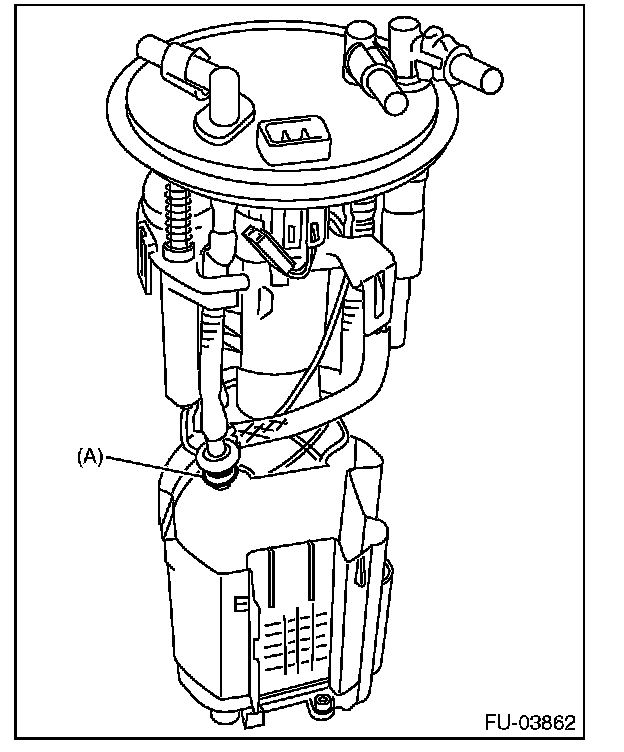 6. Attach the O-ring (A) to the fuel filter assembly, and attach the sub tank to the sub tank bracket assembly.
