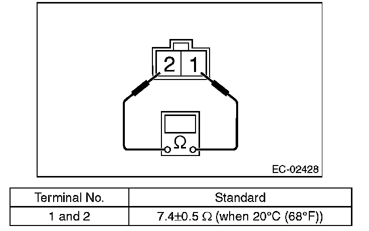 2. Measure the resistance between the oil flow control solenoid valve terminals.