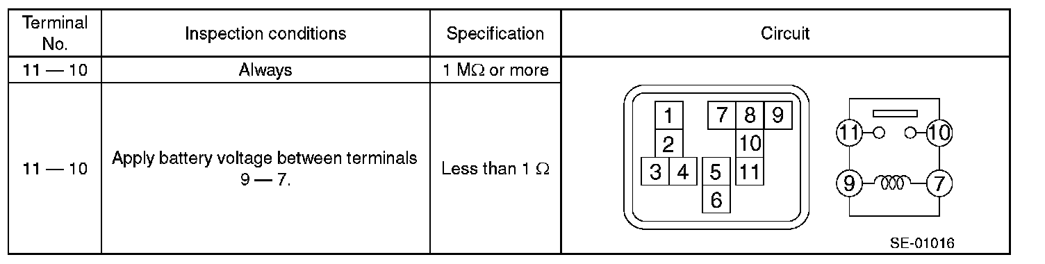 3. Replace the seat heater relay if the inspection result is not within the standard value.