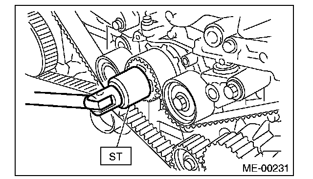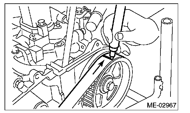 ^ Be careful not to let oil, grease or coolant contact the timing belt. Remove quickly and thoroughly if this happens.