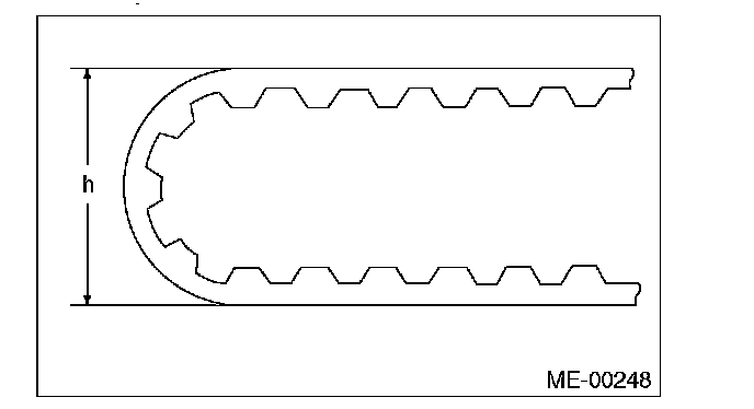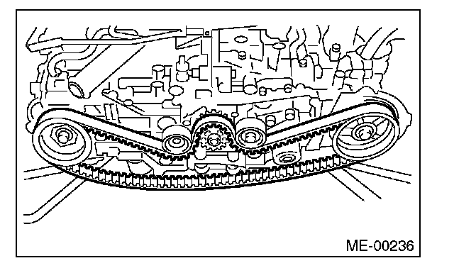 2) Check the condition on the back surface of the timing belt. If cracks are found, replace the timing belt.
