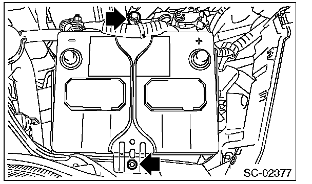 1. After disconnecting the battery ground terminal, remove the terminal cover, then disconnect the positive terminal.