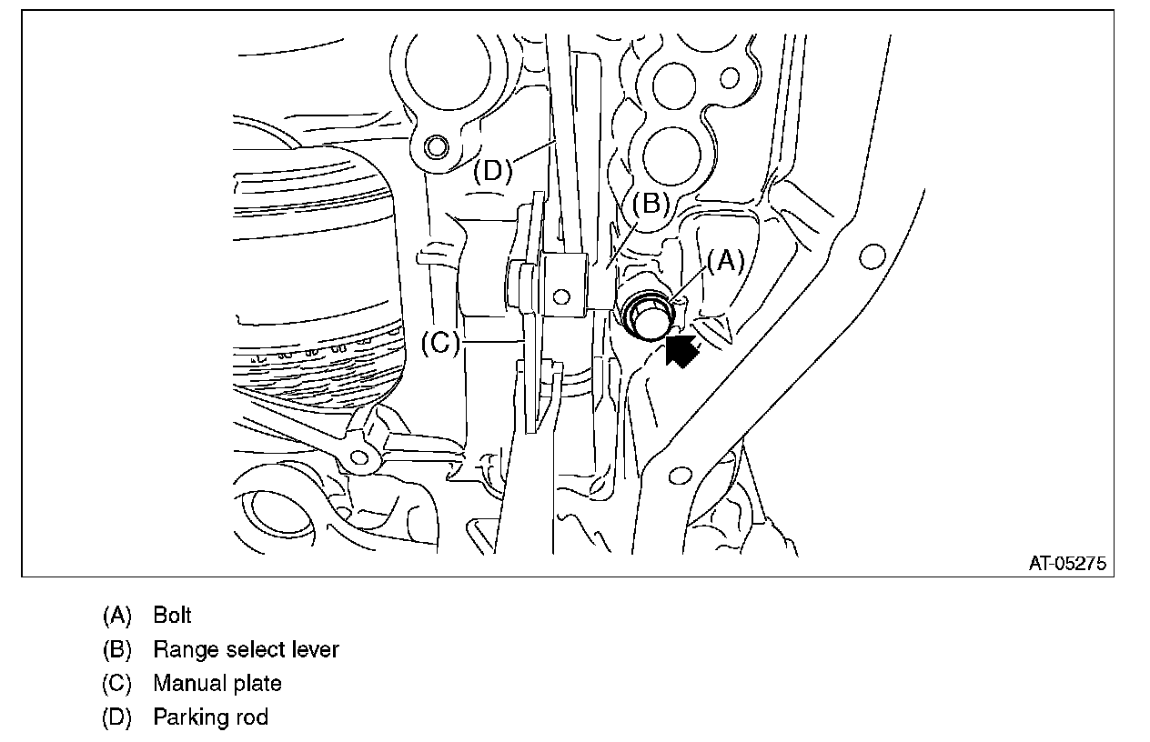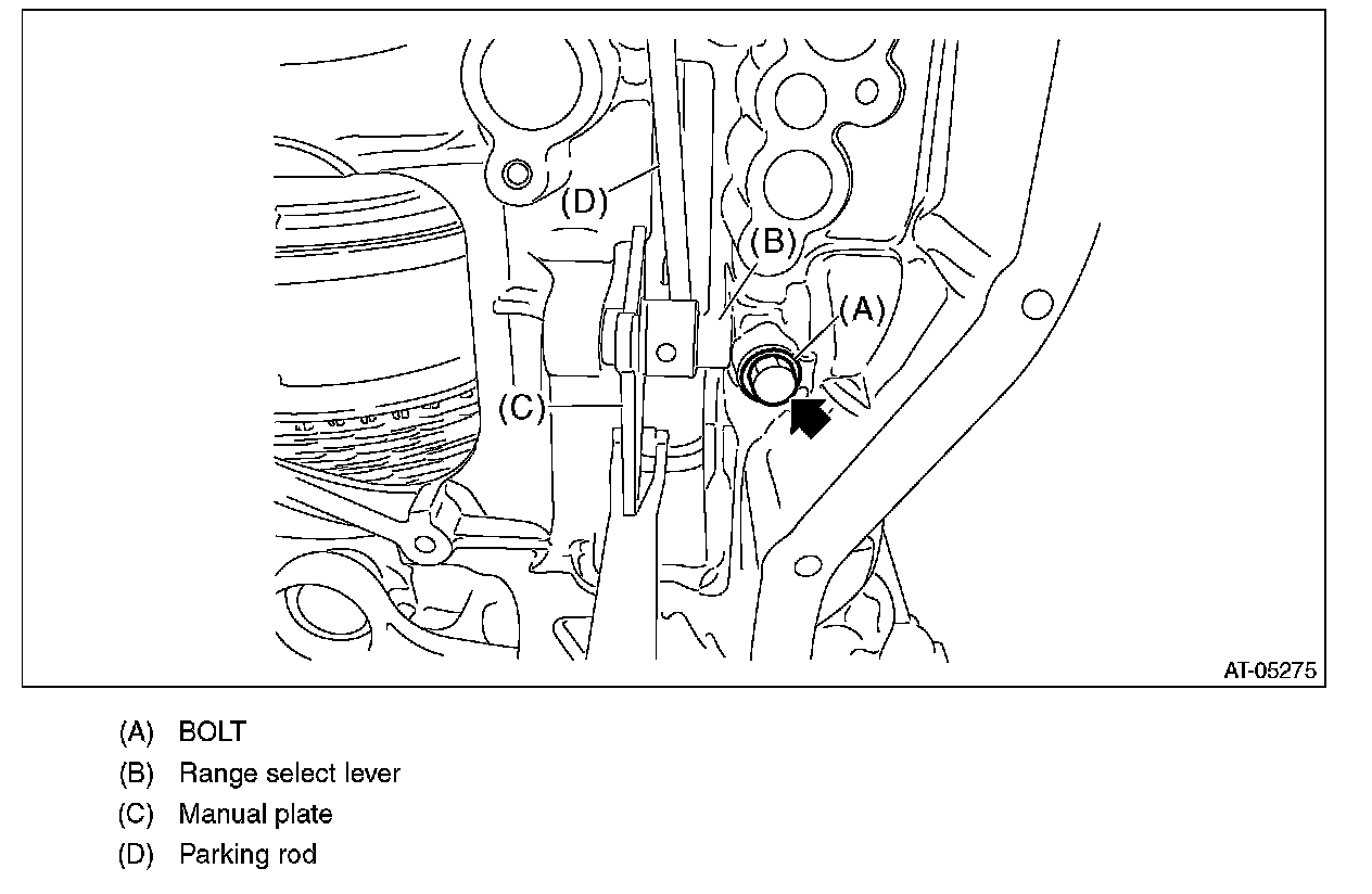 2) Install the manual plate, parking rod, range select lever and bolt.