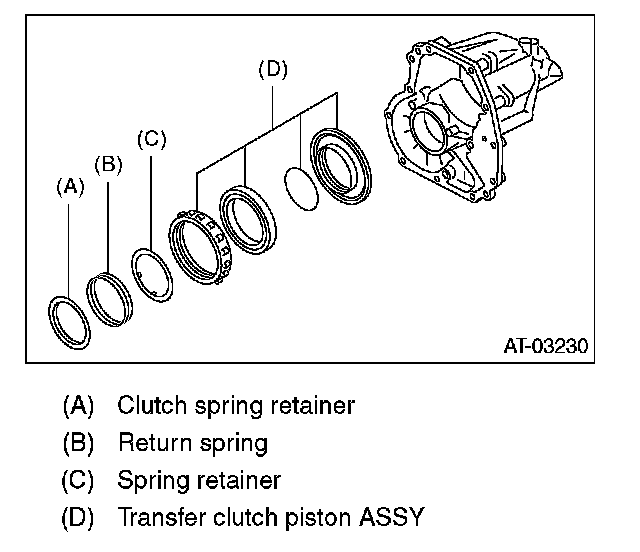 3) Insert the transfer clutch assembly, spring retainer, return spring and clutch spring retainer.