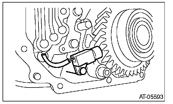9) Remove the front vehicle speed sensor through the hole of AT transmission main case.