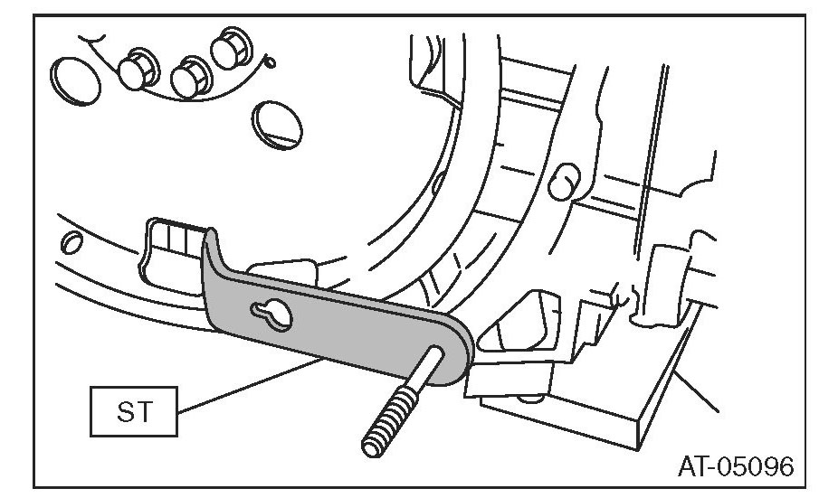 2) Use the ST to lock the crankshaft, and remove the drive plate.