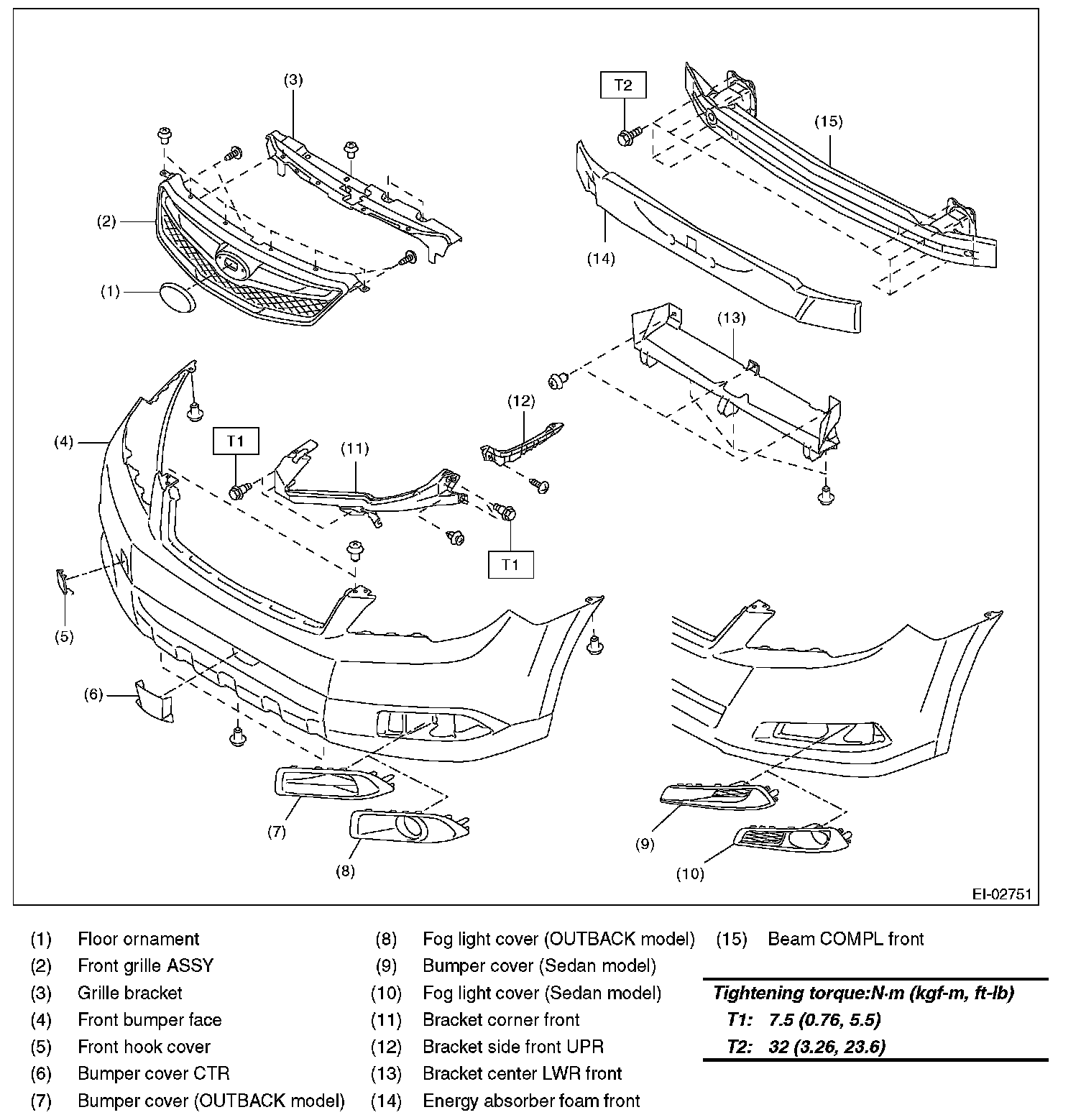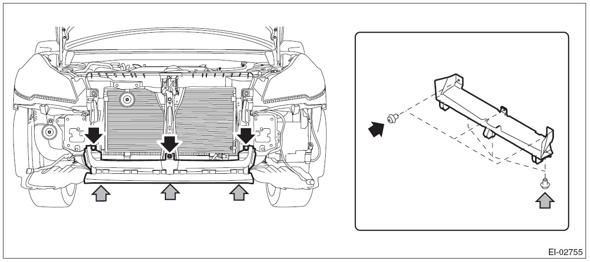 Tightening torque: Refer to "COMPONENT" of "General Description". [Ref. to FRONT BUMPER, COMPONENT, General Description.]