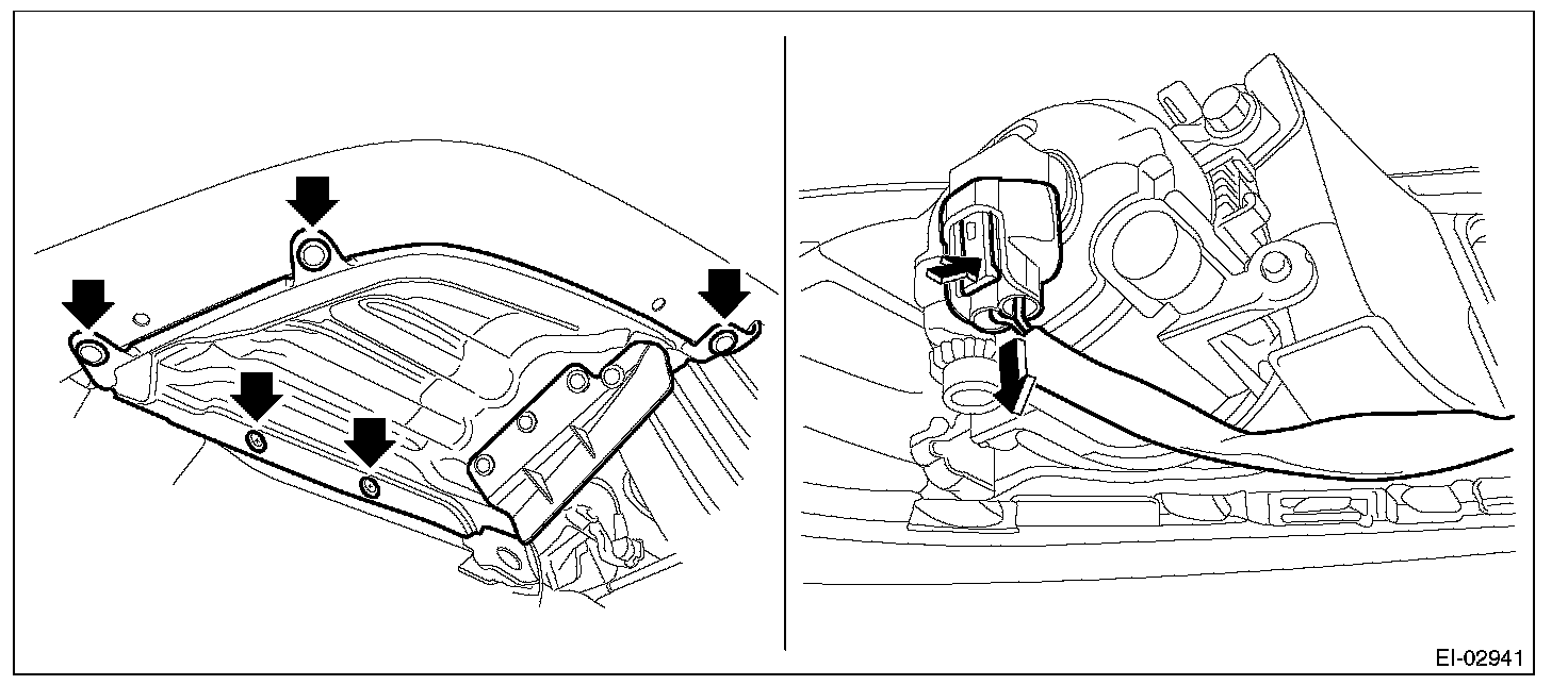 1. Remove the clips, turn over the front mud guard, and disconnect the fog light connector. (Model with fog light)