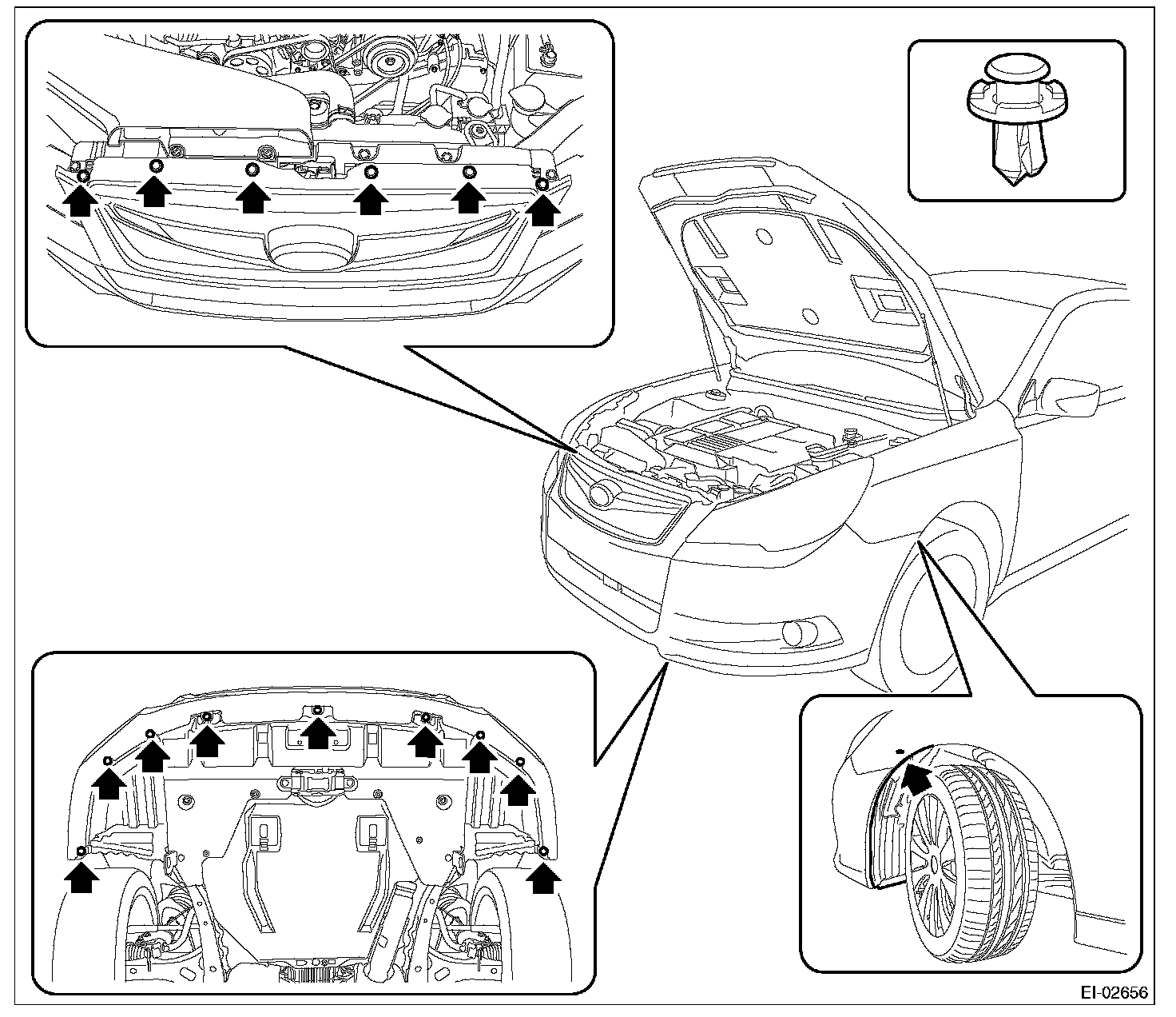 1. Release the clips to remove the front under cover.