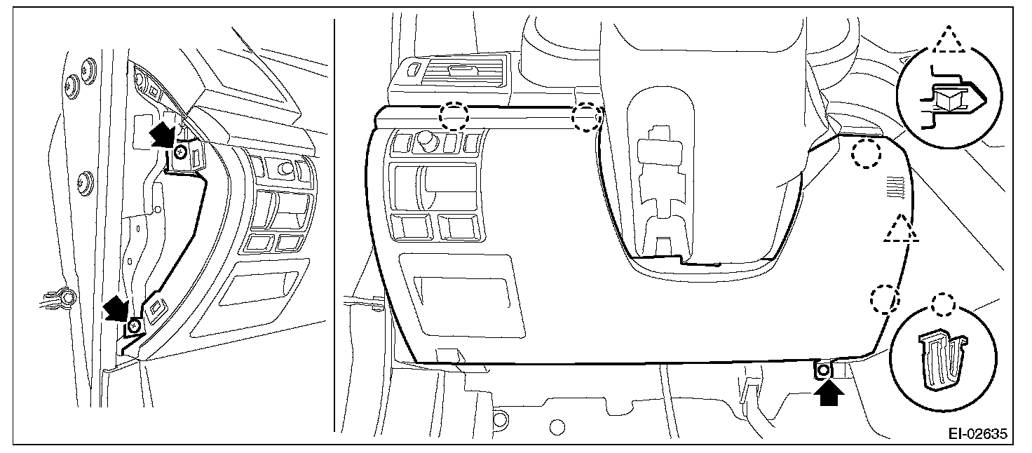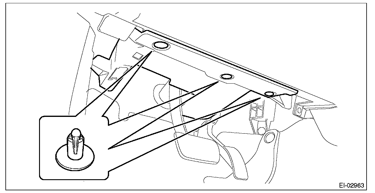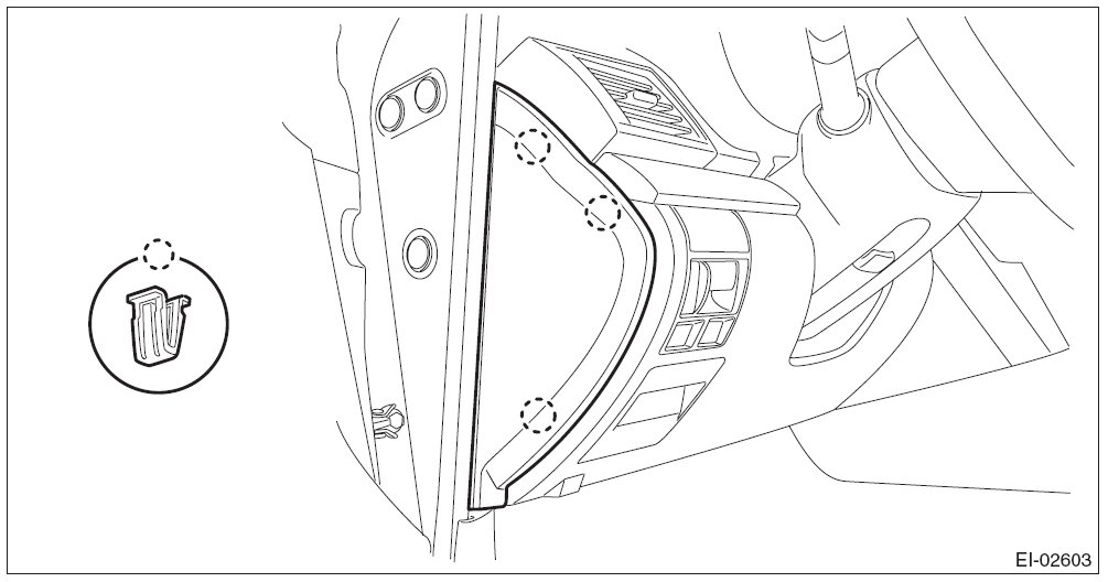 1. Remove the clips, and remove the instrument panel side cover LH.