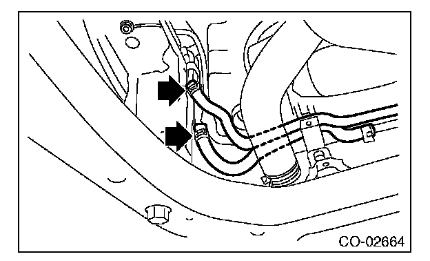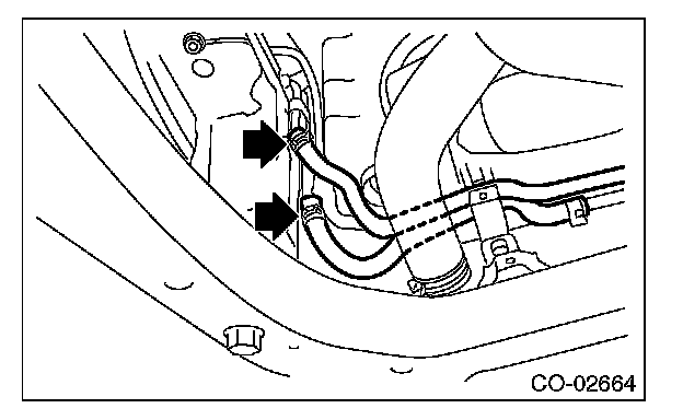 6) Disconnect the CVTF cooler hoses from CVTF pipes. (CVT model)