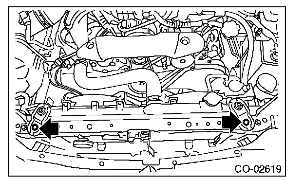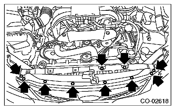 15) Remove the radiator lower cushion from the vehicle body.
