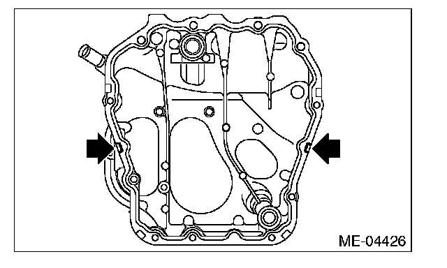 ^ Before installing the oil pan, clean the mating surface of oil pan and cylinder block.