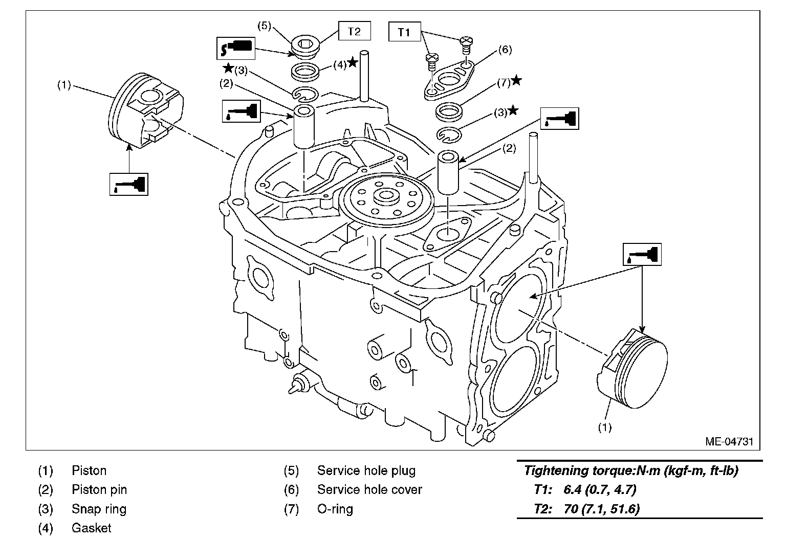 T1: 6.4 Nm (0.7 kgf-m, 4.7 ft-lb)