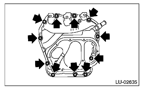 1) Apply liquid gasket to the mating surfaces of oil pan, and install the oil pan.