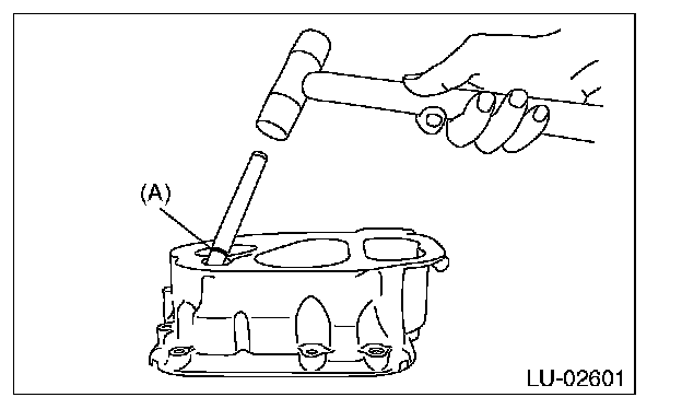 (2) Insert the oil drain pipe up to the reference line (A) using a plastic hammer.